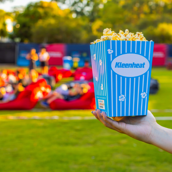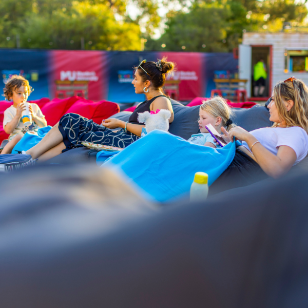 You can bring your own seats or rugs or hire a bean bag lounge. There’s a designated grassed area for different seating heights so all audience members can see the screen.