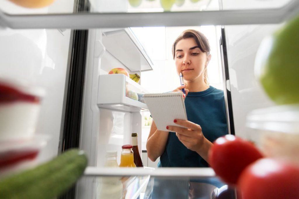 Start using up food from the cupboards and perishable food from the freezer.