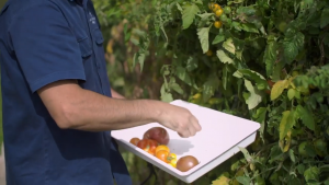 Learn a little more about Guy Jeffreys and enjoy his pumpkin flowers and leaves, carrots (stems and all) and see more on tomatoes and purslane.