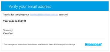 You should have received an email from Microsoft with the subject line ‘Kleenheat account email verification code’ including your verification code.